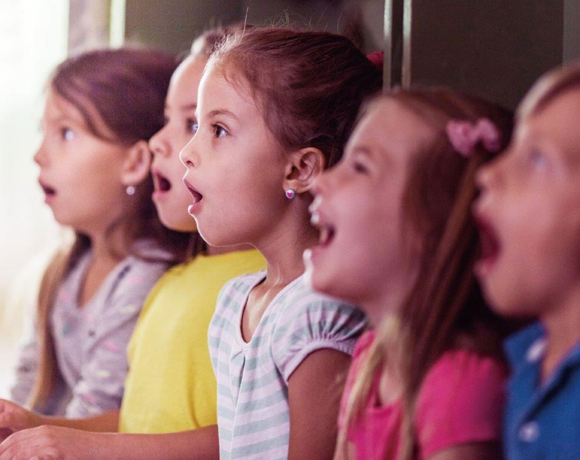 An erster Stelle steht hier die Freude am Singen. Die Kinder beschäftigen sich aber außerdem mit Stimmbildung, Atemtechnik, Gehörbildung, Rhythmik...